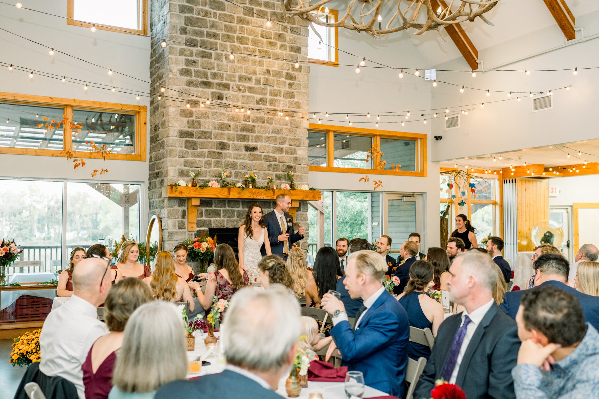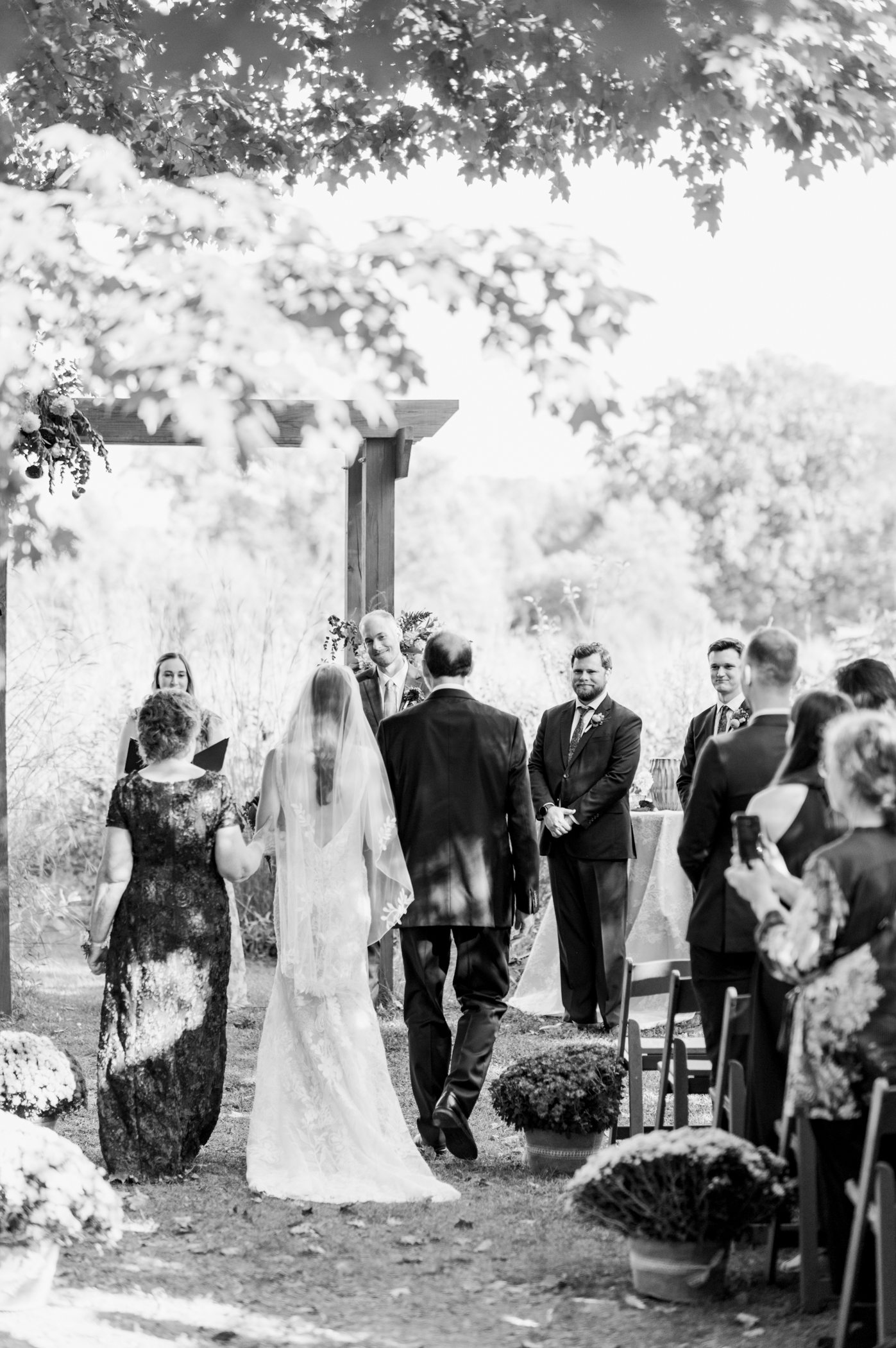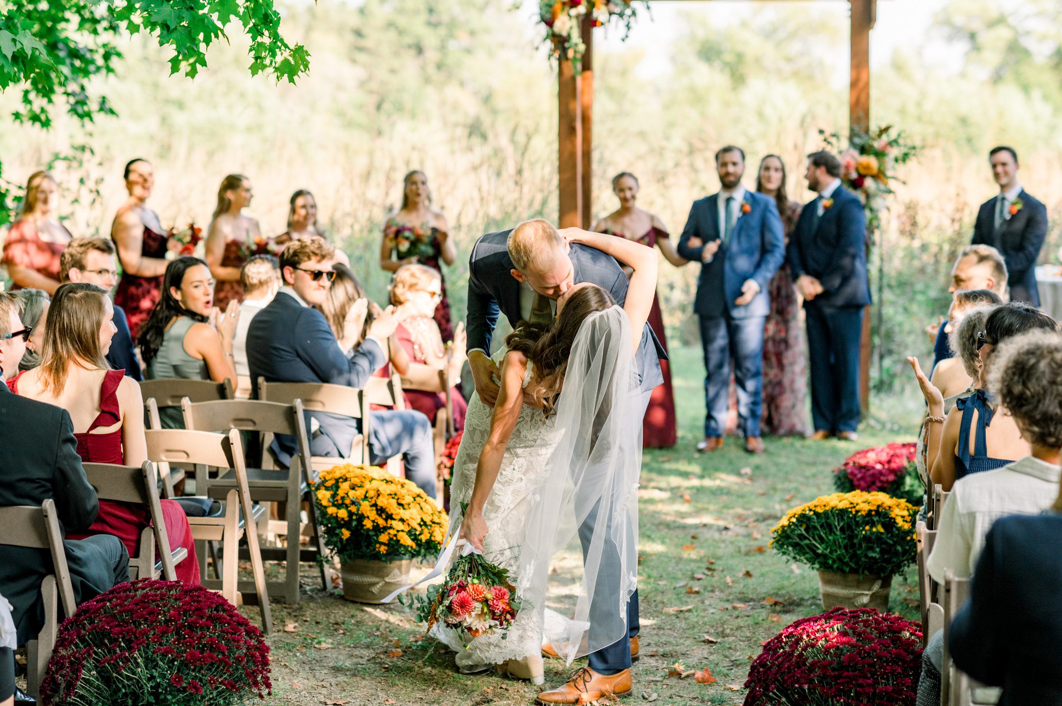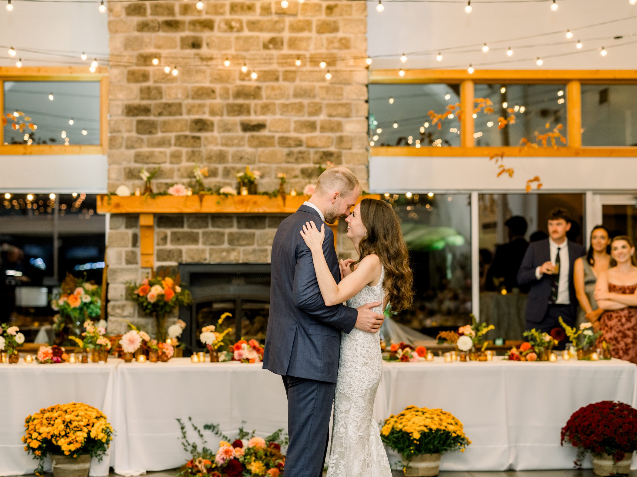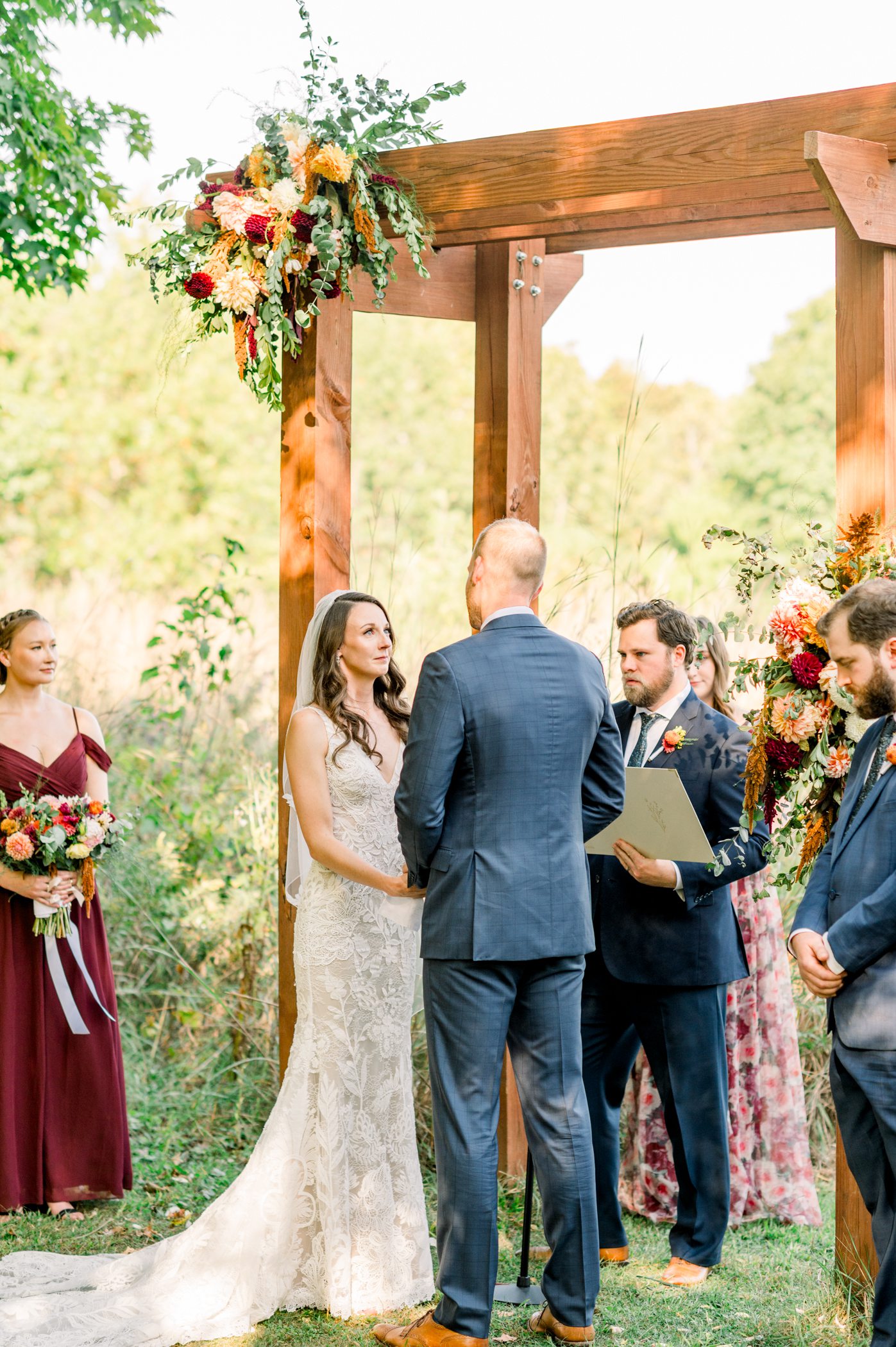 Christina and Andrew exchanged vows under maple trees that overlooked the prairie, mingled on the back patio for cocktail hour, and slow danced in front of the indoor fireplace. It was perfect in all ways!