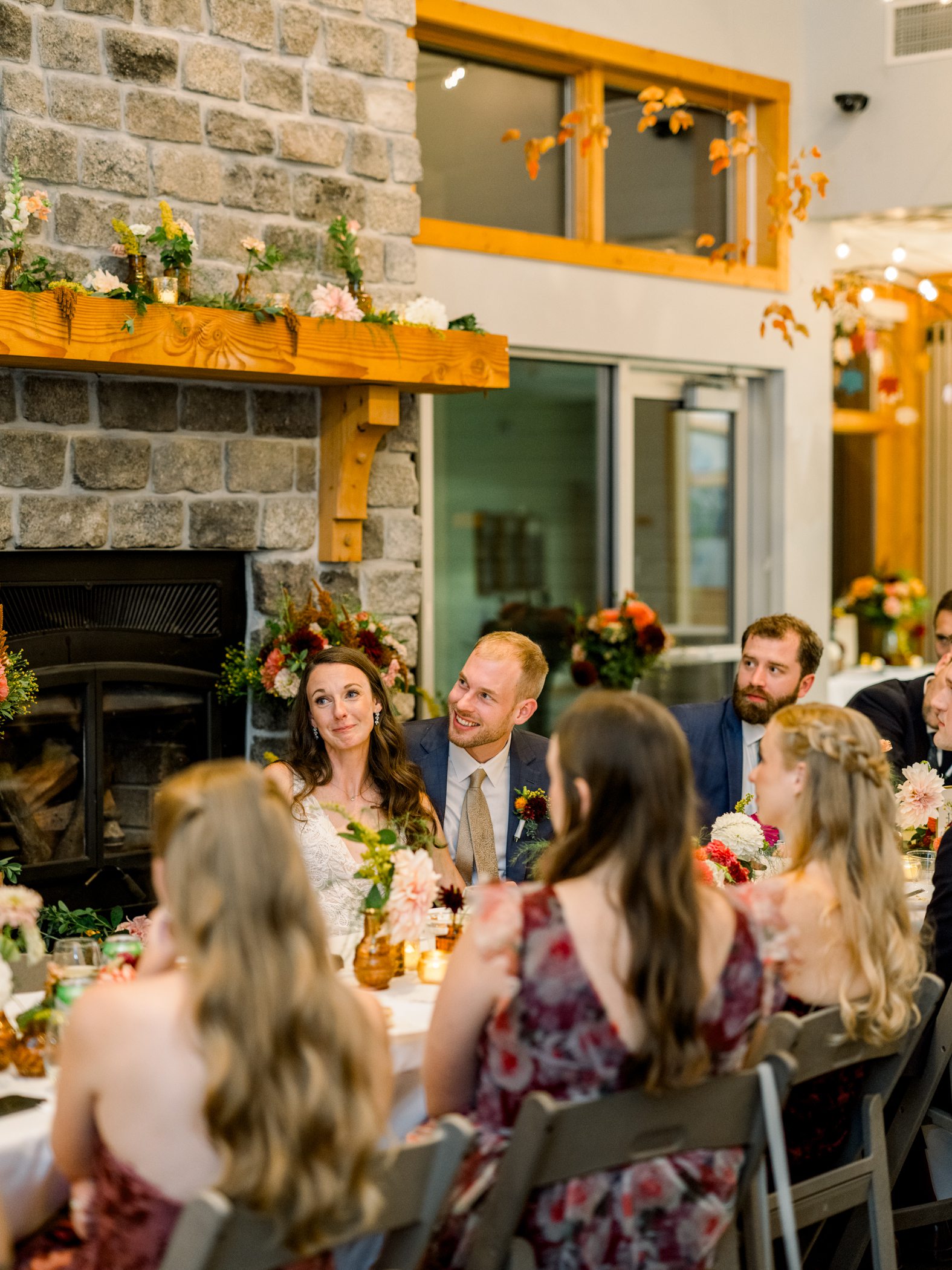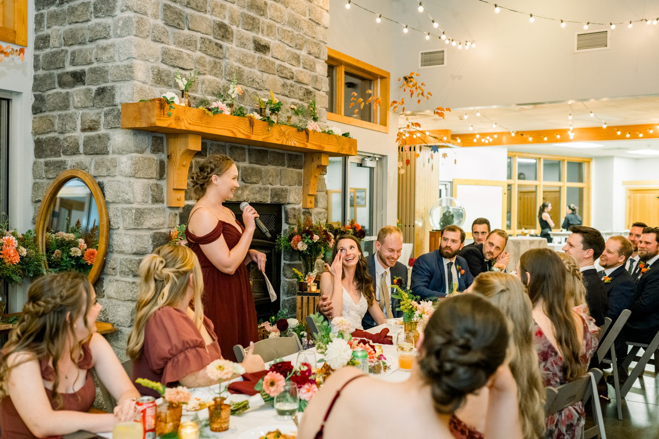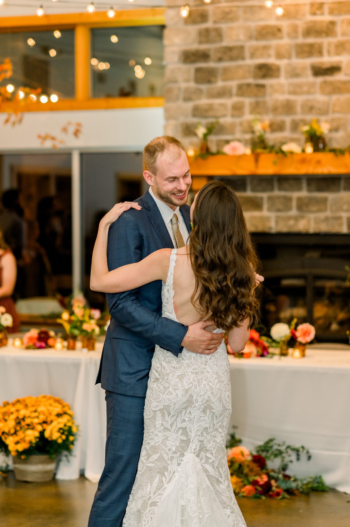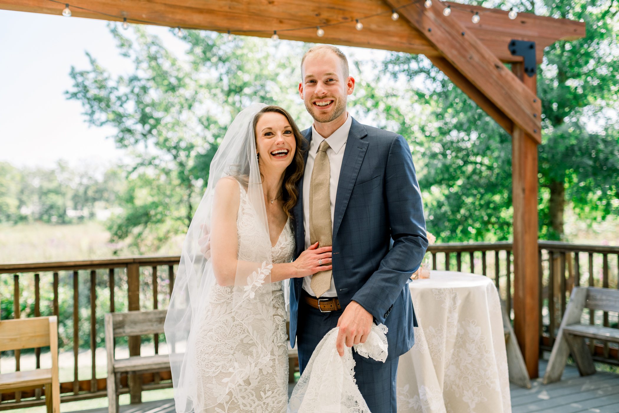Christina and Andrew exchanged vows under maple trees that overlooked the prairie, mingled on the back patio for cocktail hour, and slow danced in front of the indoor fireplace. It was perfect in all ways!