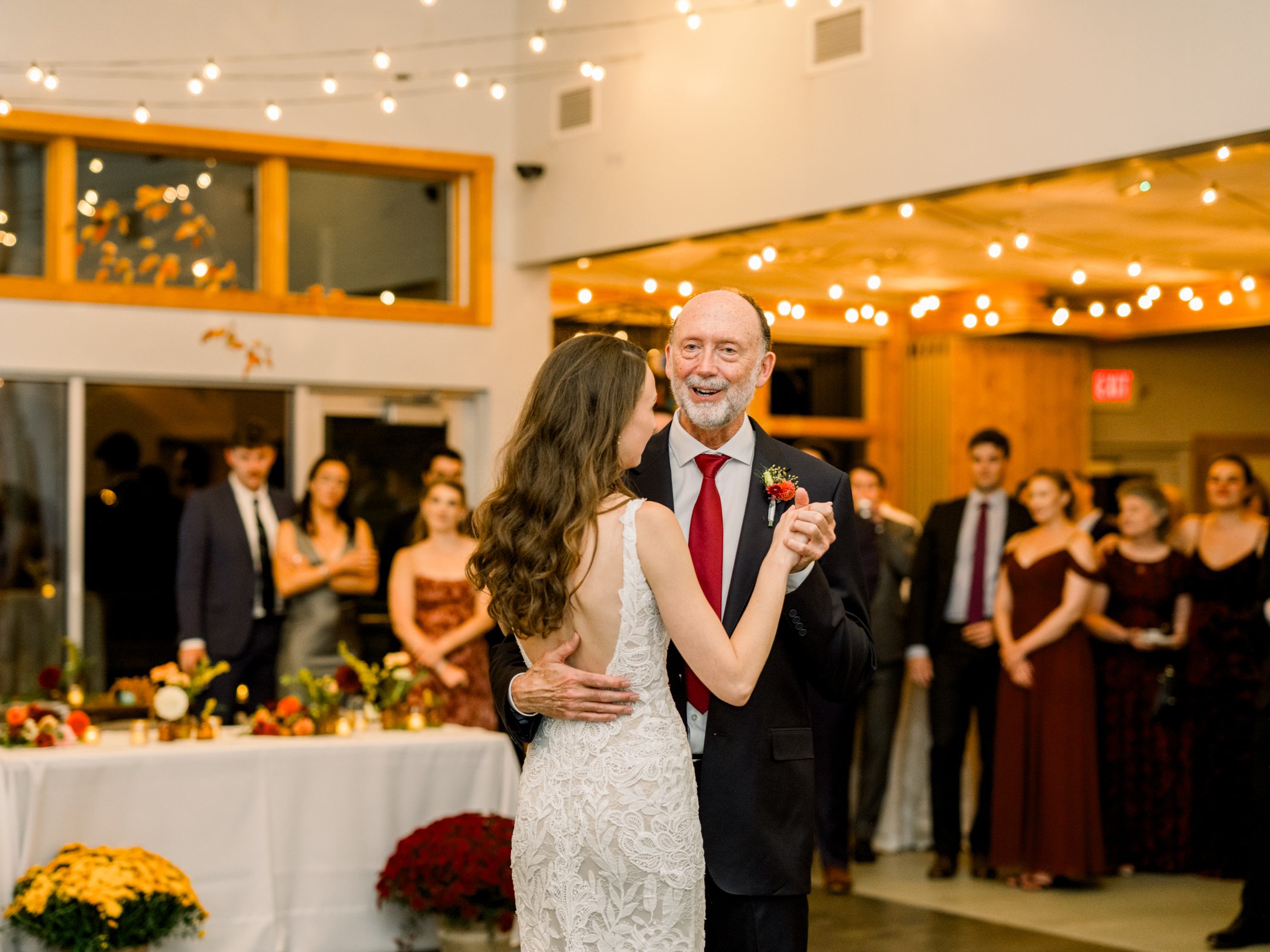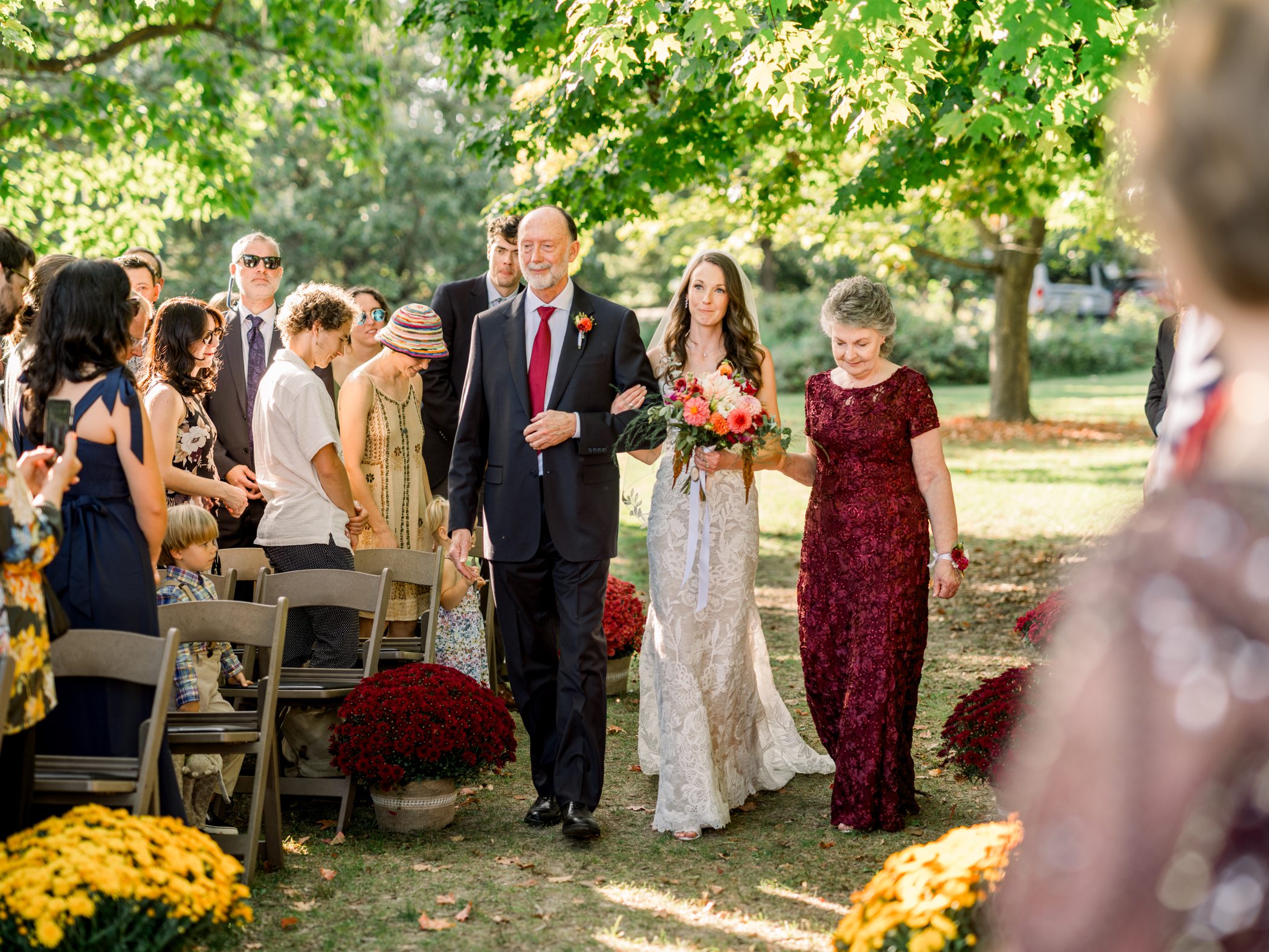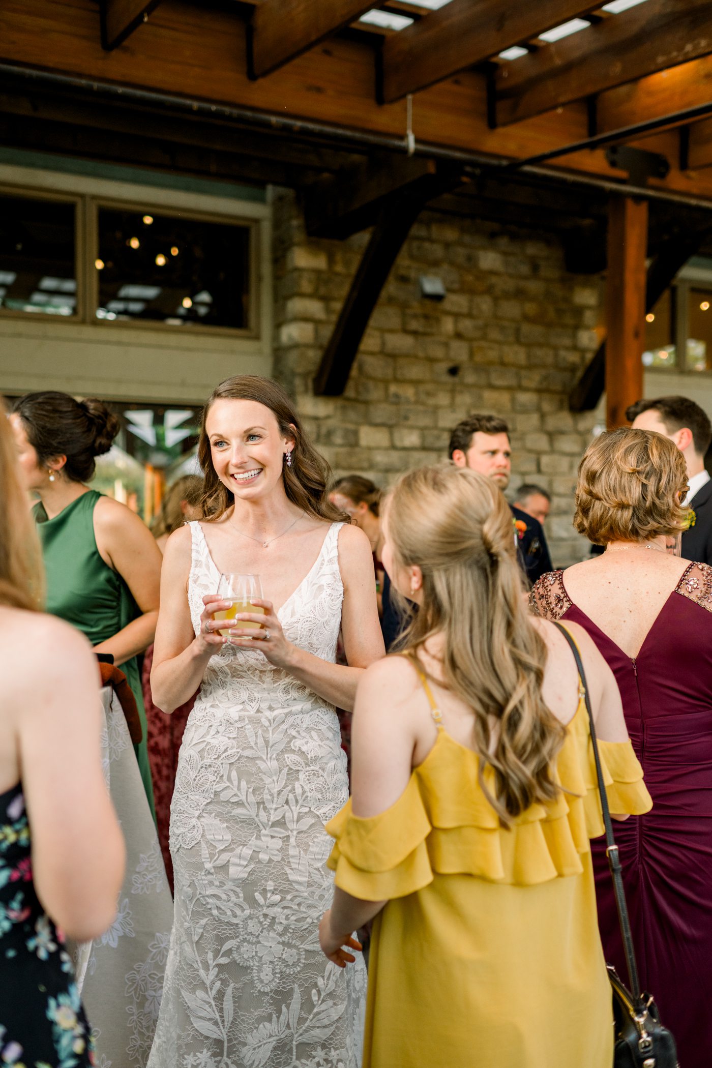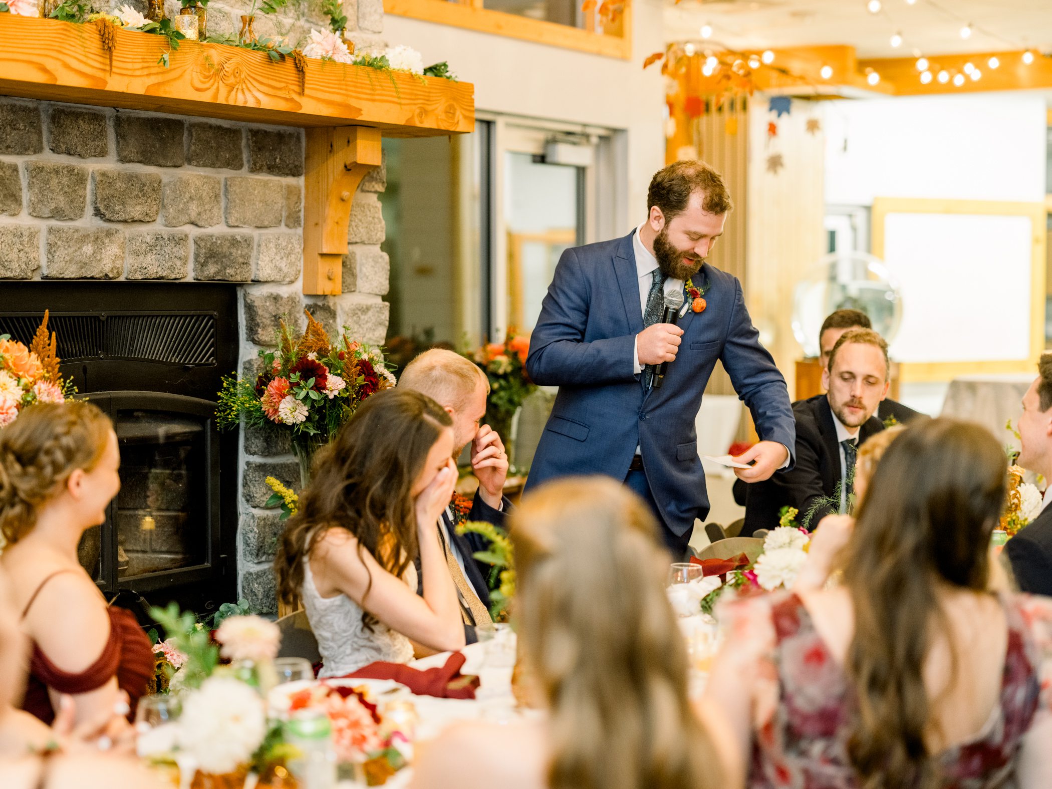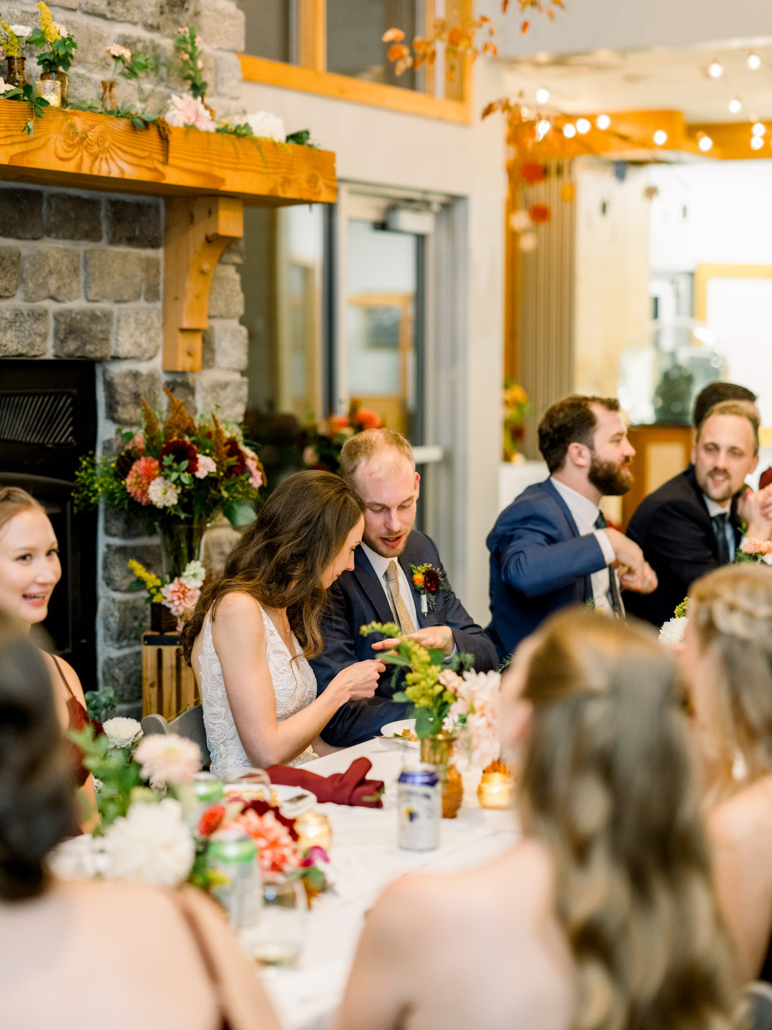 Christina and Andrew exchanged vows under maple trees that overlooked the prairie, mingled on the back patio for cocktail hour, and slow danced in front of the indoor fireplace. It was perfect in all ways!
